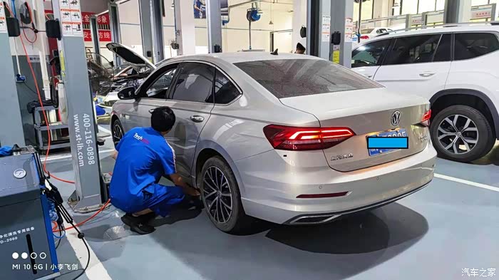 因为时间没到,去展厅里去看了下车,每次来店里我都会去展厅看下有出了哪些新款车,看了下21款的朗逸电子这一块升级了很多,车速表转速表也升级为电子显示屏看起来就高大上,展厅转了转了看到外保养的车排队很长了,到修理车间看到师傅已经把车开到了工位上。