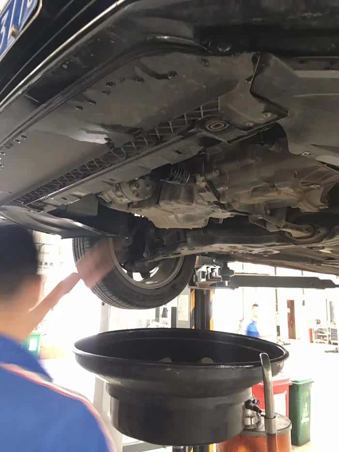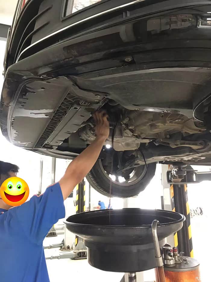 熟练的拔下放油螺丝,没有弄身上一点油。油黑乎乎的,和之前的差别很大。