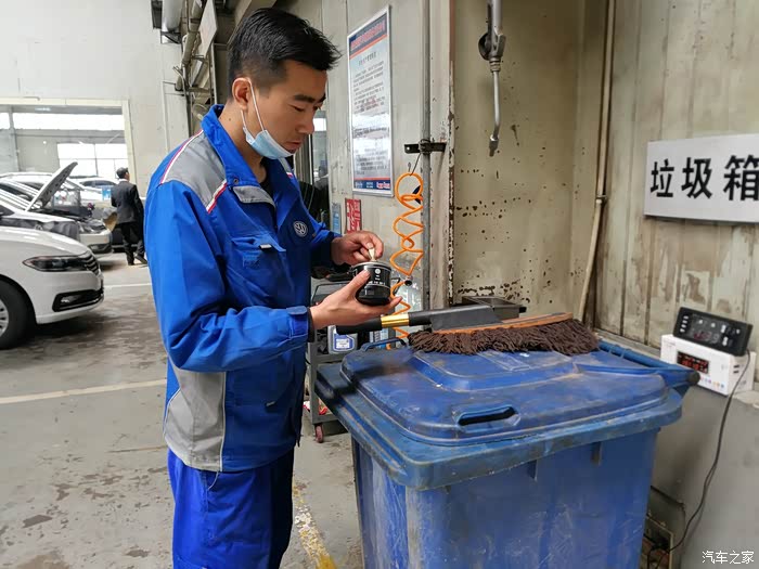维修师傅操作熟练,倒机油时,一滴不落。