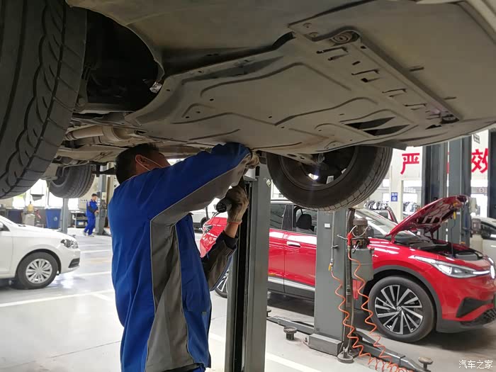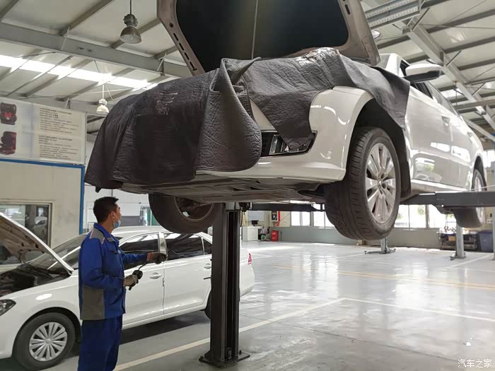 小刘经理作好保养预算,爱车白朗开进维保工位。