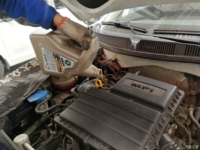 不一会儿,4L机油加注完成。