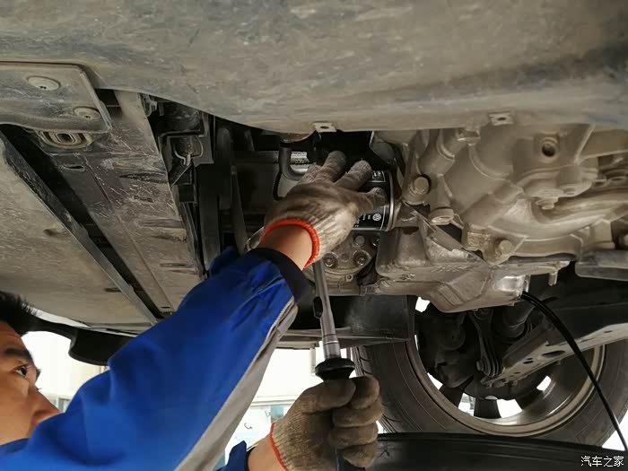 放油螺丝卸掉,废旧机油奔流而出。