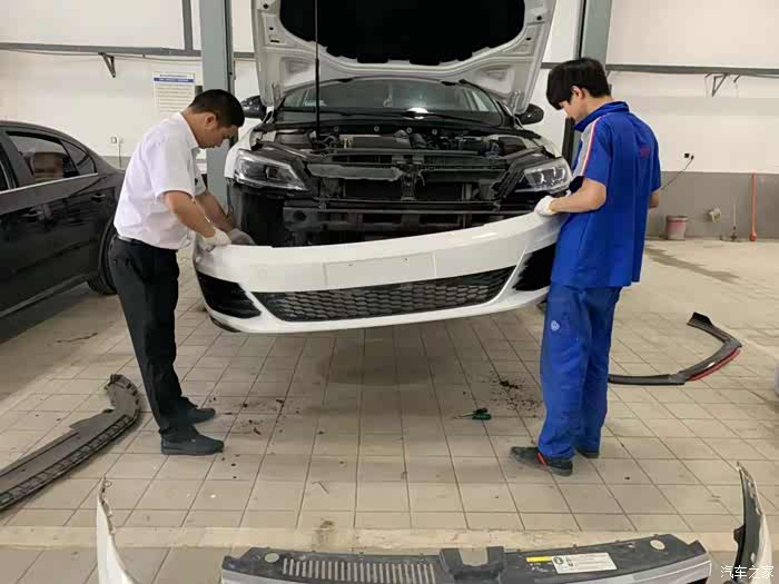 原车前杠拆除完毕,准备上GTS前杠了