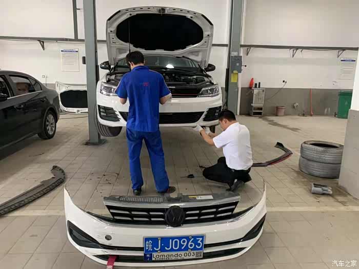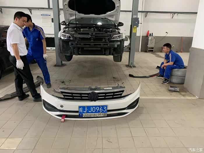 车子上升降架,准备拆除原保险杠。