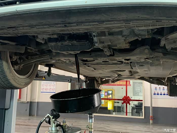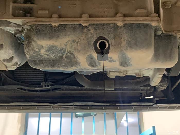 接下来小哥拆下发动机舱下护板,熟练的放出了里面的旧机油,因为没有其他车待修,小哥贴心的说多方一会放干净点。