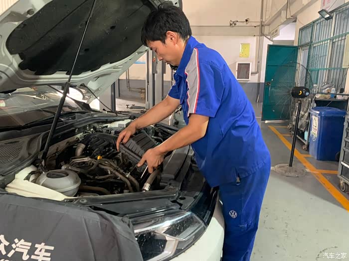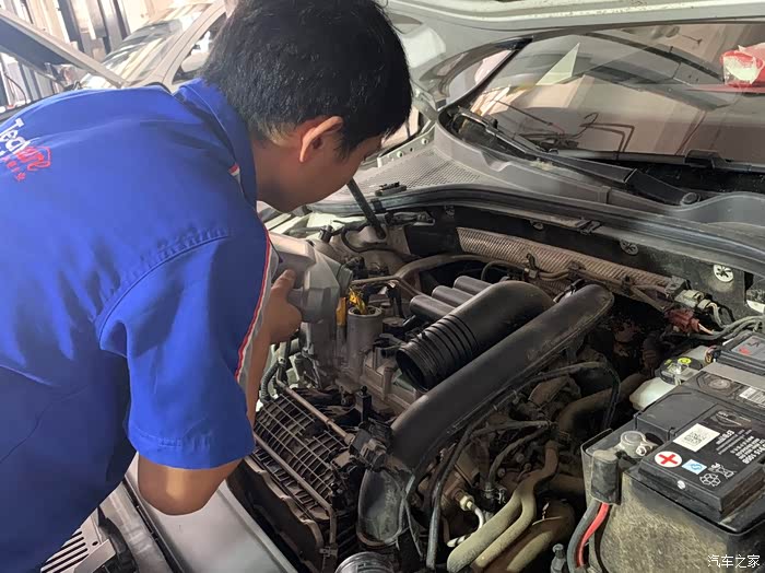 巧了,维保小哥也是上次的同一人,小哥接车后热情服务,先是给发动机舱来了个全面的清洗。最近一直跑农村土路灰尘很多,清理完果然干净。