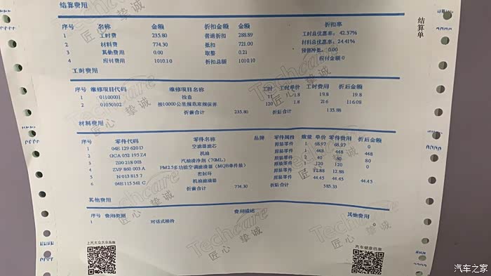 这次保养除去优惠券一共花费613元,都是积分抵扣,没花软妹币,值了!!