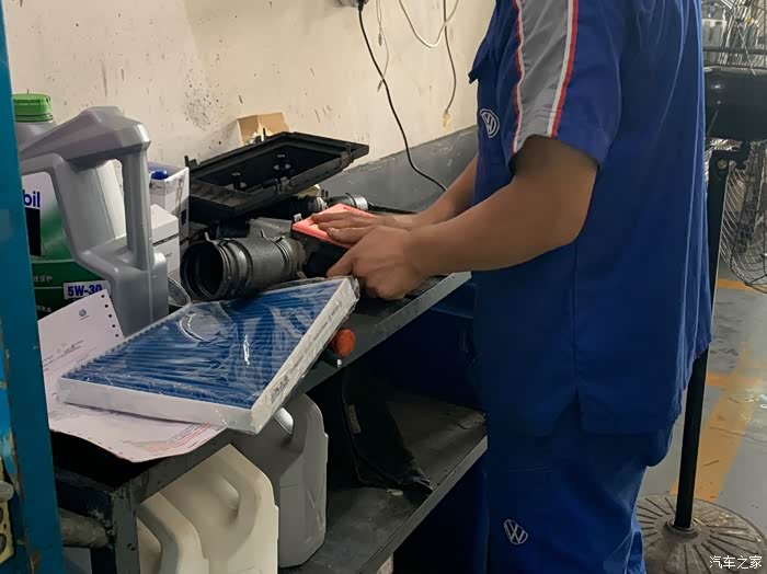 然后将空气滤和空调滤拆了出来,熟练的动作感觉小哥依旧融入了肌肉记忆里。