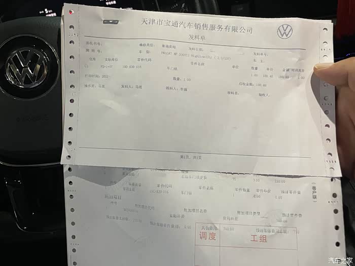 索赔工单,内容很详细,不过价格是188零件钱在家210的工时费,这要是自己换就亏大发了