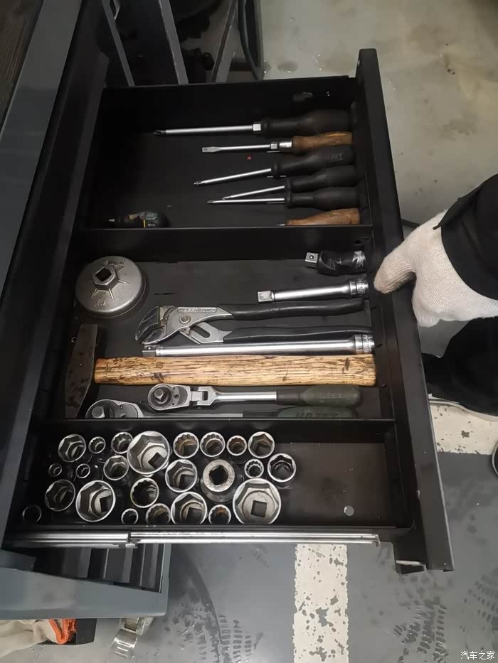 扳手整齐有序,看着工具就知道这位师父工作应该也是非常严谨的。