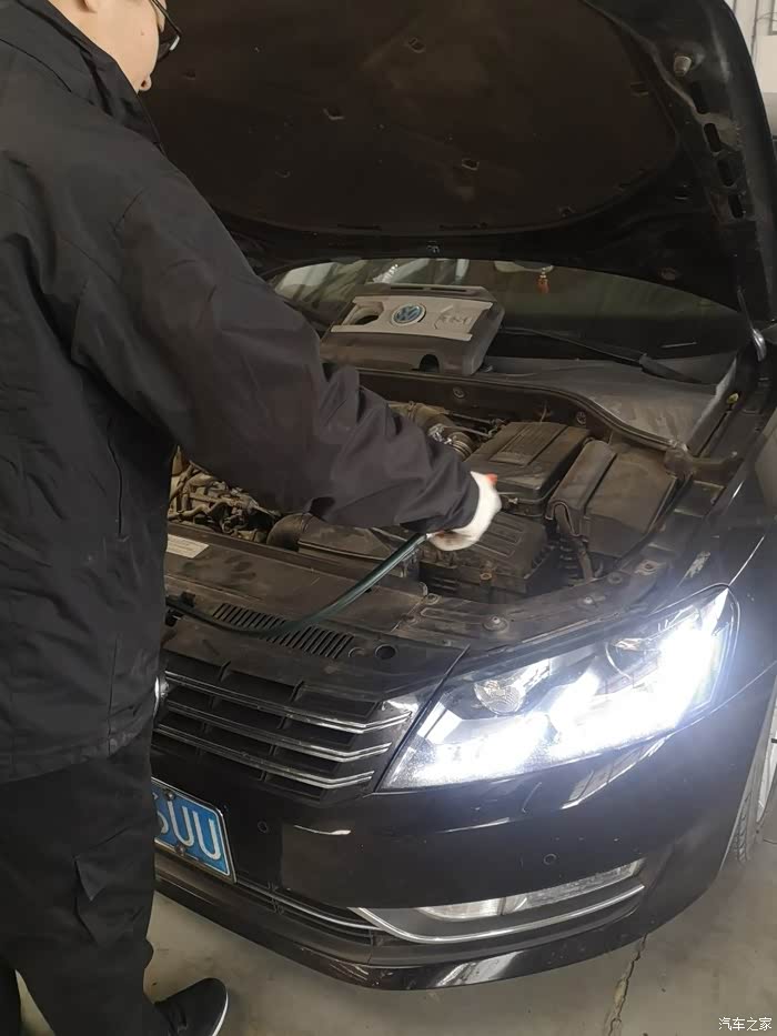 不懂的只能看个门道,这位师父的技术我觉得应该给予点赞。先把车给全部吹一下,让附在发动机舱上的灰尘和泥土都清理干净,方便保养的时候发动机舱的清洁。