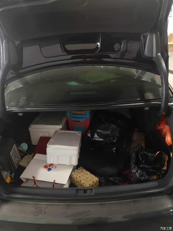 后备箱能放很多东西,有点儿乱,只管上上镜吧