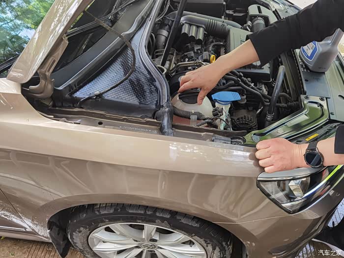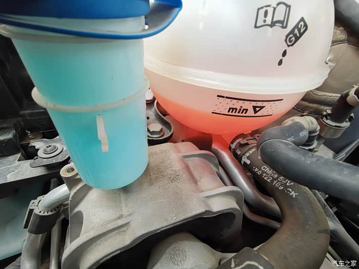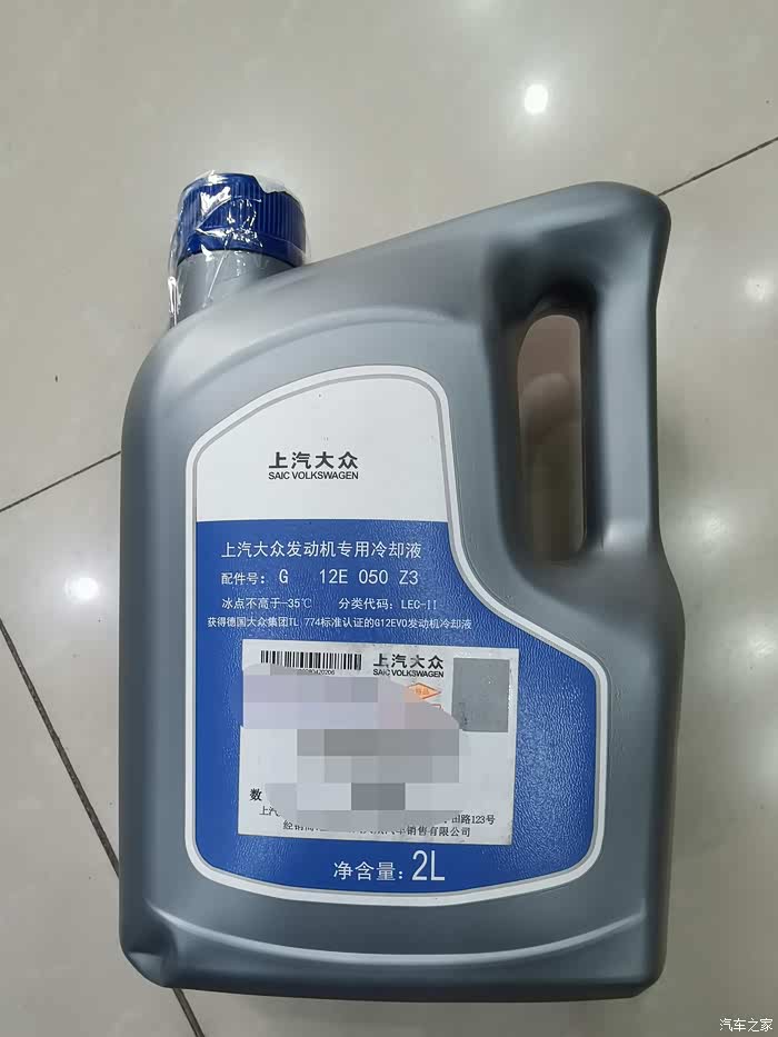 我选的防冻液是上汽大众原厂的防冻液,不同品牌的防冻液不能混加,毕竟防冻液是化学产品,不同品牌的防冻液加在一起会发生化学反应,严重时会损坏发动机。