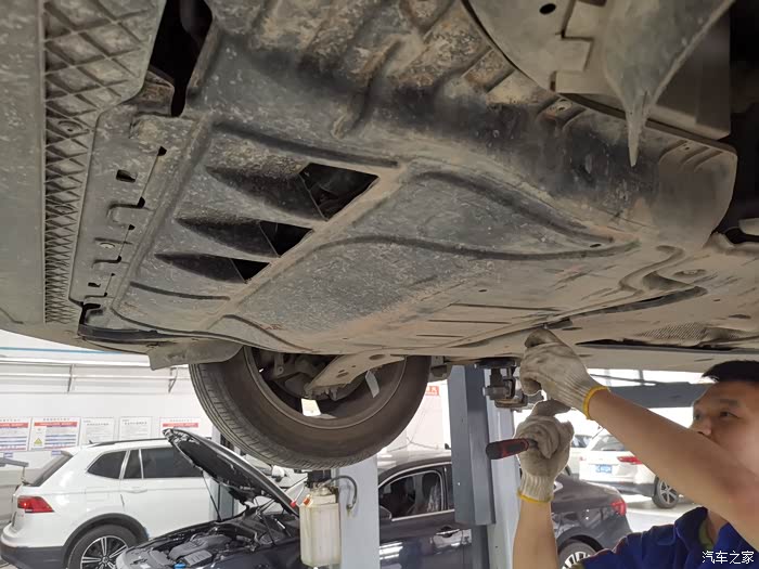 师傅准备拆下护板,开始换机油
