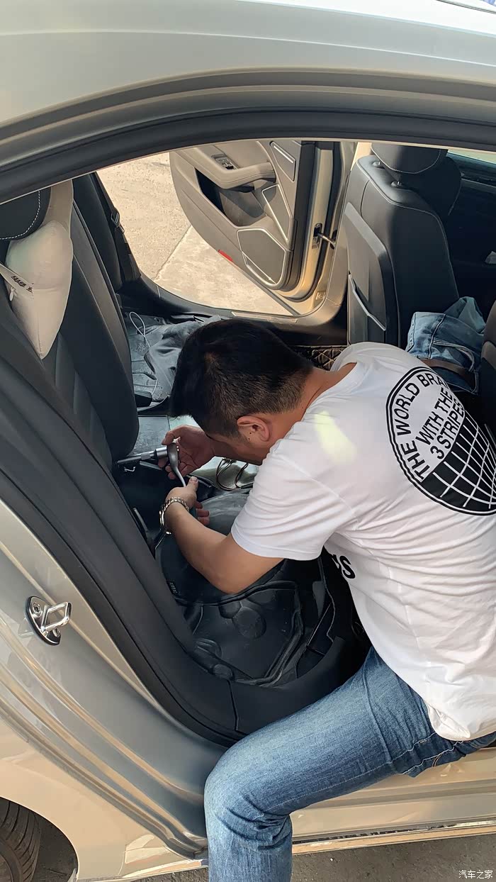 装窗帘需要拆座椅靠背,这小工穿着白t恤牛仔裤还带着小手表感觉一点也不专业(二次安装)