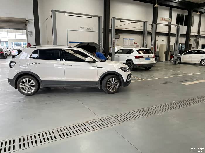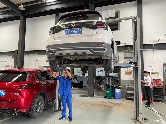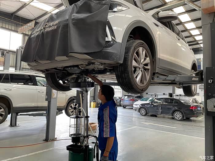 今天啥日子,4S店保养的人还挺多的,外面停不下来直接开进车间来了