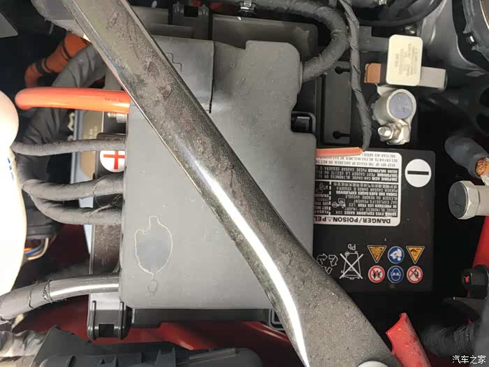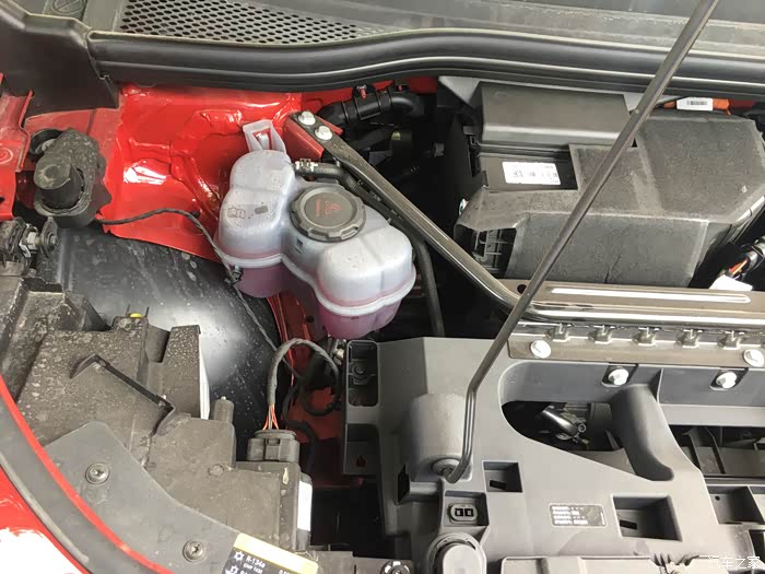 保险丝盒,两个白色的壶是刹车油壶和玻璃水壶