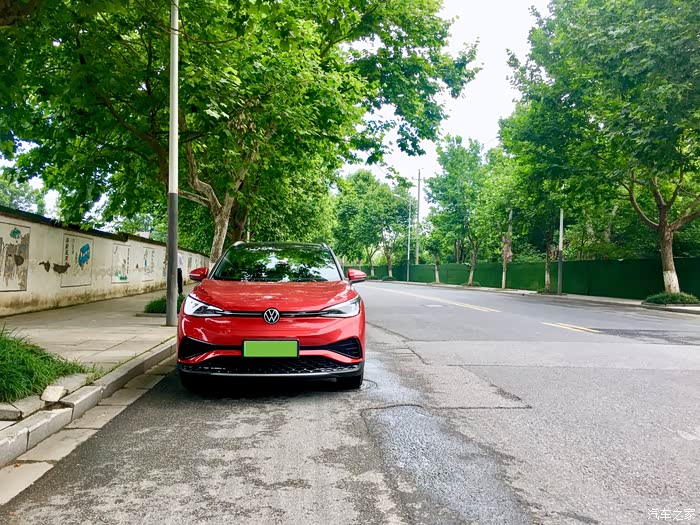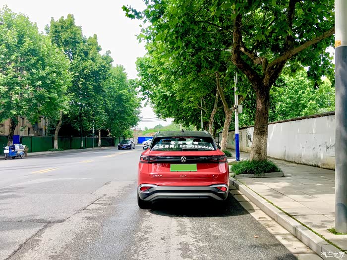 试乘一段后,在路边停下车,现在仔细围观一下这辆新上市的ID4X。然后换我试驾这辆车,这是我第一次驾驶电动车。