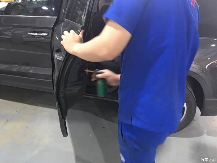 师傅很细心的给门锁润滑