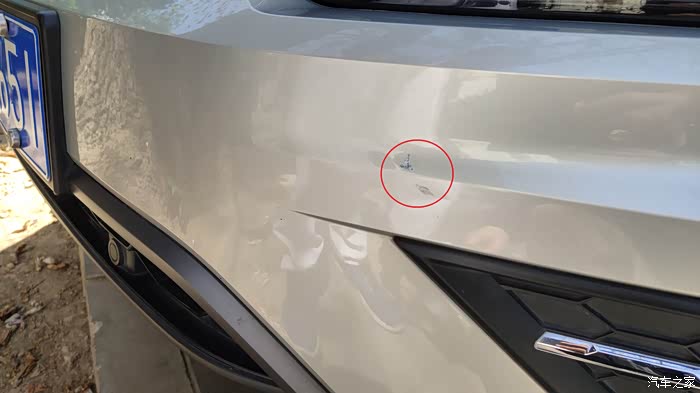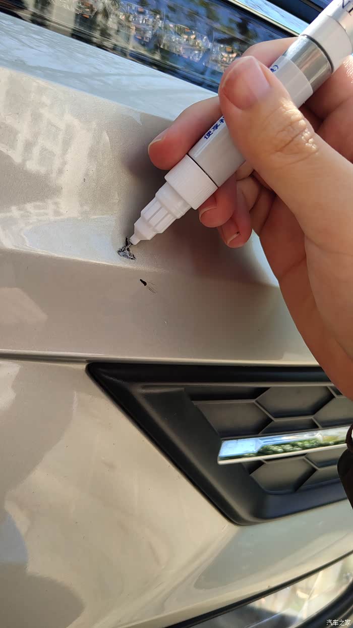 唯一的遗憾,当然是因为没有免费喷漆券了的缘故,在前保险杠左下边的伤口没有疗伤,此伤应该是以前在318国道上留下的纪念,当时听到“咣”的一声。由于伤口不大,且在塑料的保险杠的下边,不存在被锈蚀的情况,也不太明显,因此决定自己试着为帅哥做一次疗伤。