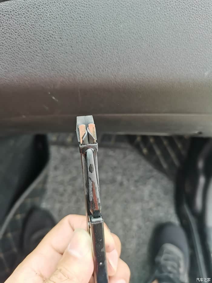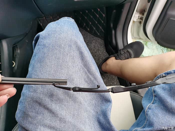 双手握住雨刮器 轻轻向下用力,这样就可以分离出来了。不要用太大了哈,到时候损坏前挡不要怪我哈