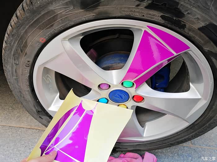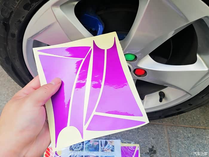我们不能总是无情的开车,也要适当地进行检查,养护和化妆,今天的轮毂贴纸就权当是给17存的大脚做个美容吧,这次的贴纸是电镀紫,看到车友的很好看,眼馋,哈哈。每个轮子上有15片贴纸,依次对号入住才能够粘上,当然了,贴之前要对轮毂进行喷水和擦拭,这样才能够粘的结实