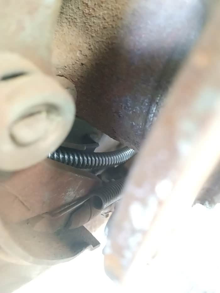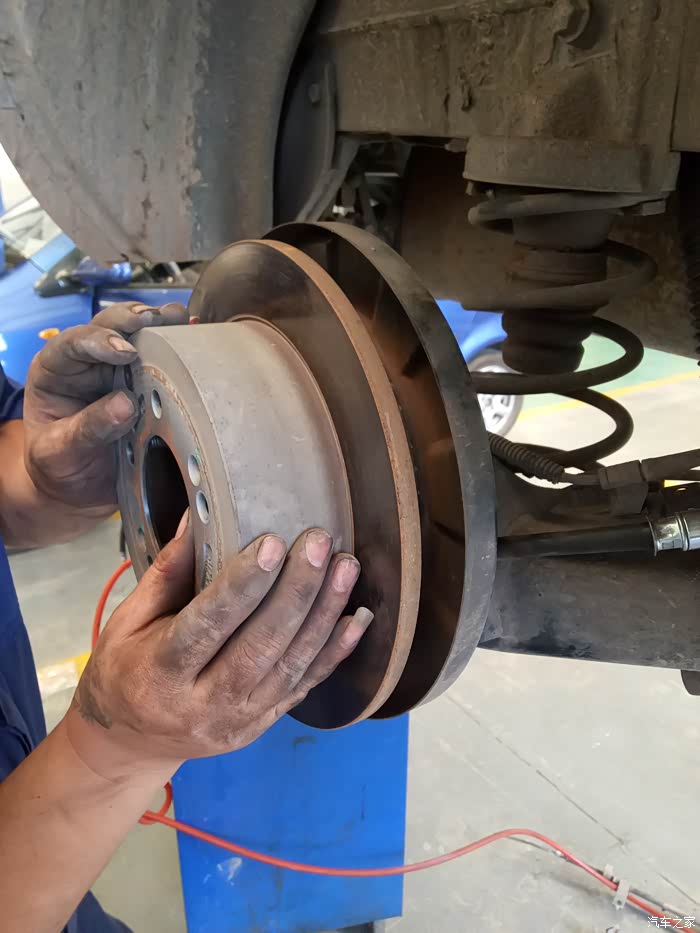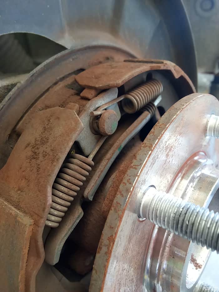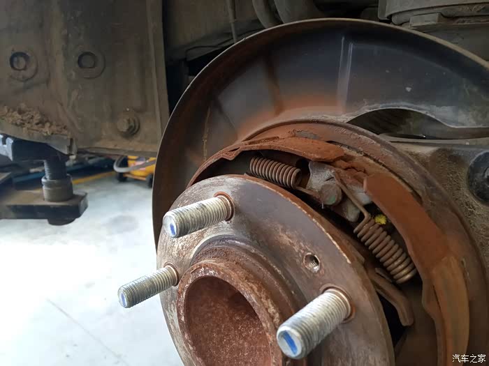 车轮拆卸下来,看看刹车盘,有人说了,怎么这么锈,这个很正常,因为是铸铁的,生锈很正常