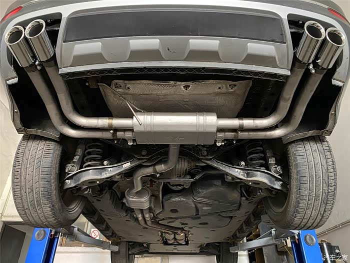 首先说下,途昂的尾口是隐藏式朝下的,尾喉那里也是假的,封闭的,而且现在也没有途昂的后唇套件在卖,所以想改四出的话,只能切割一些尾口了