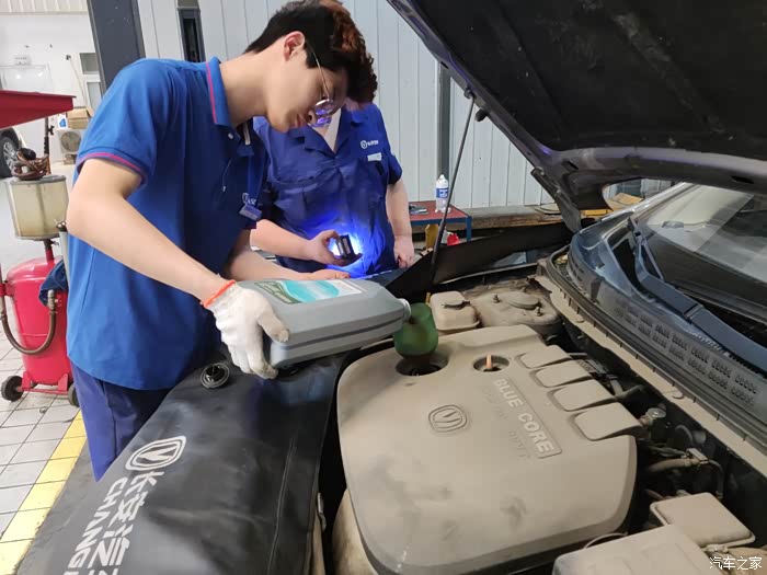 倒入新的机油