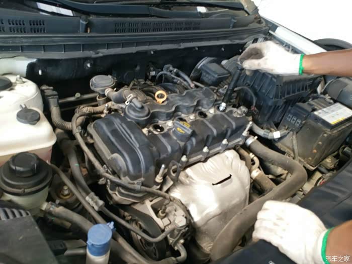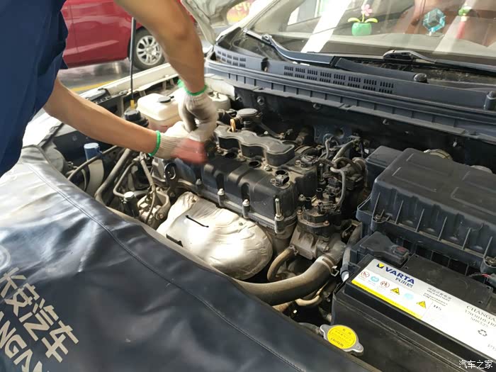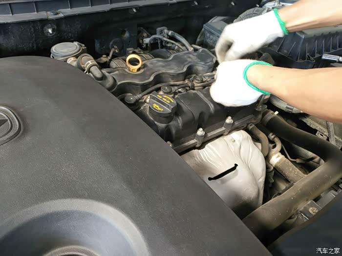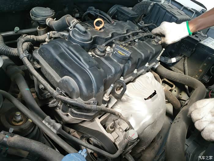 火花塞更换完以后,开始为发动机恢复机盖