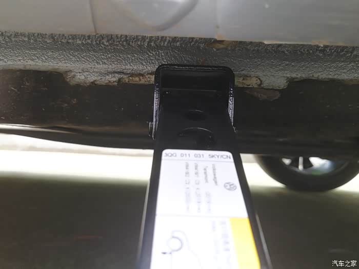 第一步,先用千斤顶把车子顶起来,车子侧裙边下方有一个突出的点,那就是支撑点!