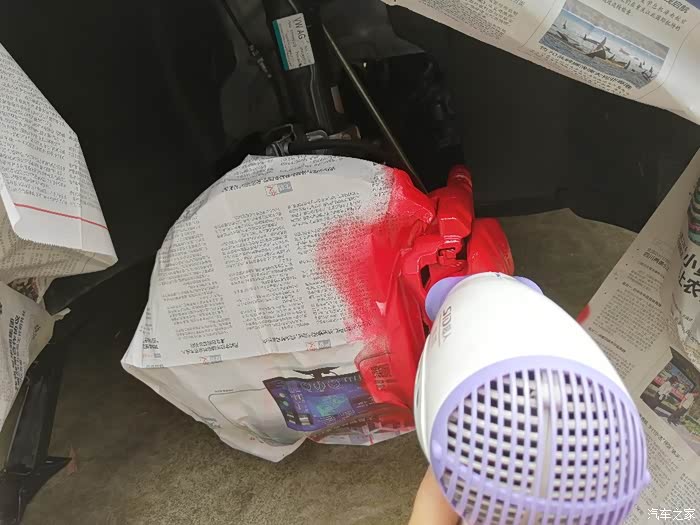 目测已经成功了,再用吹风吹一吹,加速油漆烘干,以后也可以出去吹牛逼说我这是烤漆工艺咯!