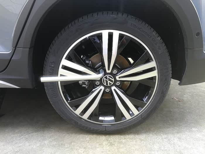 来劲了,搞起!轮毂螺丝是17mm的,新车出厂是用电动扭力扳手紧固的,自己拆卸的话一般一臂之力足矣!
