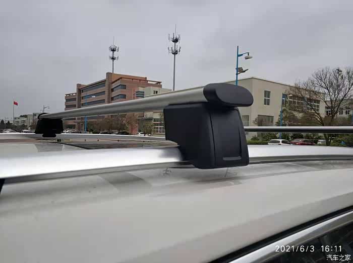 先将承重座安装于车顶上再测量相对两个承重座的孔距,根据测得的孔距确定顶杆截断和打孔位置。右侧原孔边上的线是截断的位置。一定要先打孔后截断,因为如果用手电钻打孔时可以用脚踩住要截掉的部分方便打孔。打孔时一定要先打小孔定位再打正式的孔。正式的孔位顶杆底面是6毫米,顶面是10毫米。感觉没必要打标准的椭圆孔,直接打圆孔即可,因为另一端是椭圆孔,如果有误差可以在另一端调节。我打的就是圆孔,安装一点儿问题也没有。