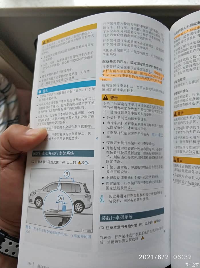 说明书中对顶杆安装位置的要求,前杆距离车顶行李架脚3至6厘米,后杆距前杆约75厘米。