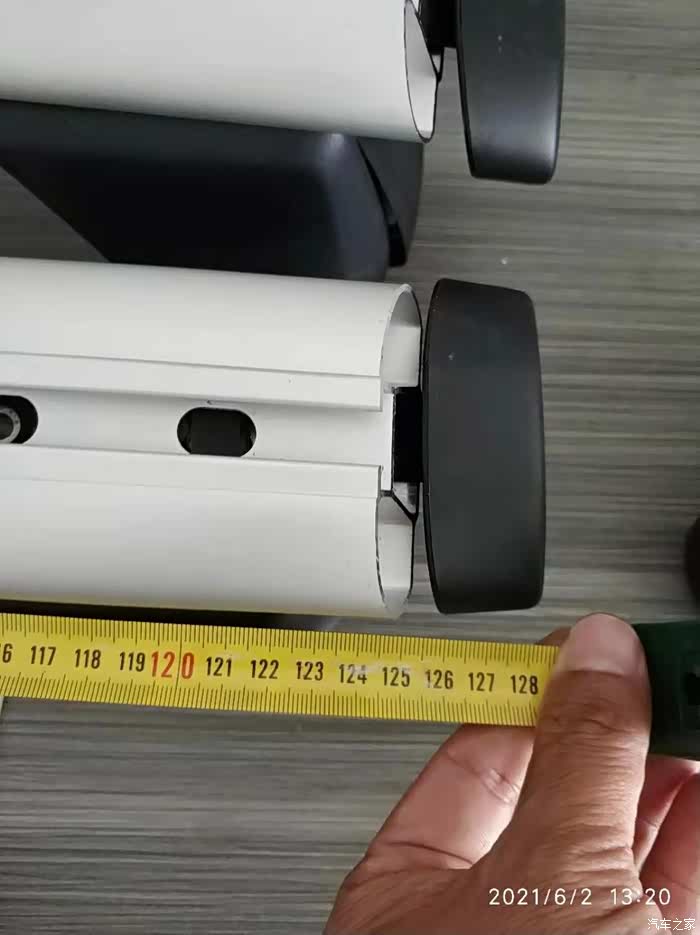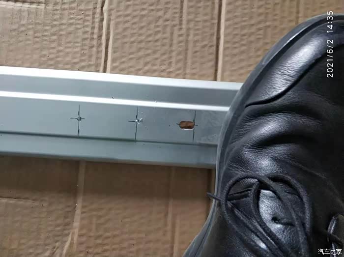 切下来大约8厘米,铝件真的不好切,最好是用专用的有角度调节功能的切铝专用锯。建议车友可以量好尺寸以后到外面的铝合金加工点让他们切和打孔,毕竟人家是专业做铝的。