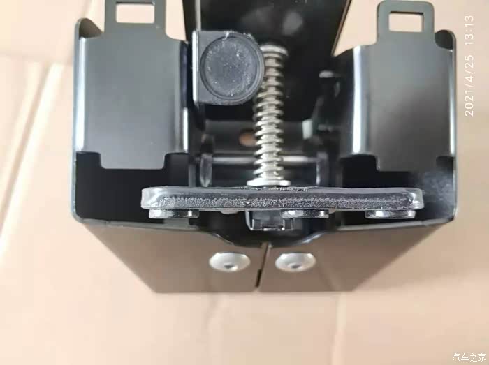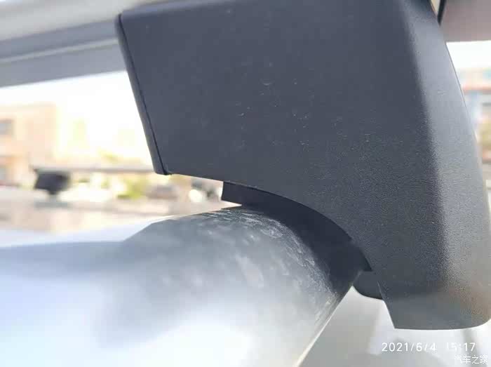 这是使用手持磨光机打磨后的状态,Q5这套顶杆做工真的没话说,各种小细节考虑的特别好。凸起柱这个面有一层明显厚于其他地方的涂层,防止固定时对车顶铝合金纵杆的磨损和伤害,打磨时不可避免的有一些伤害。打磨后的凸起柱完全不凸出于安装平面了。打磨以后我又使用黑色自喷漆喷了五遍,防止后期生锈。这个凸起柱有的车友是直接敲掉的,个人不建议敲掉。因为用力敲击肯定会导致承重座发生变形,哪性是轻微的变形也是有可能影响实际安装效果的。也有可能破坏承重座的表面漆层,导致生锈。敲掉凸起柱后的孔防锈处理不好也是个隐患。