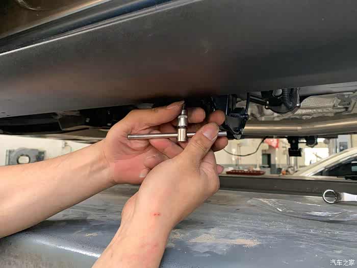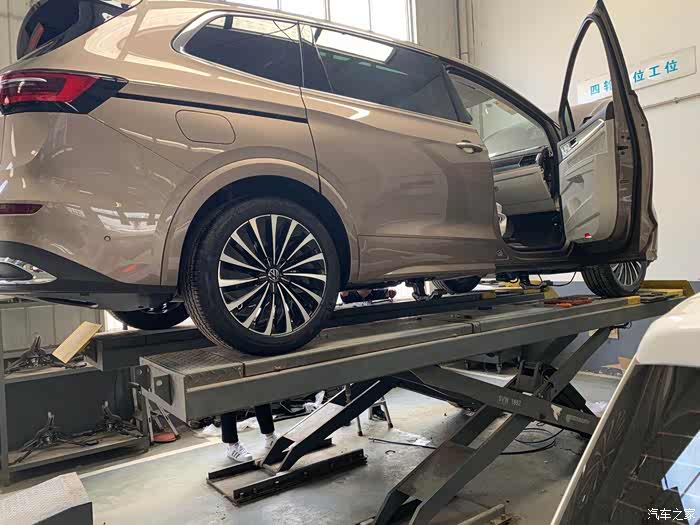 一名技工师傅先把车开上了升降架,还有一个师傅一会儿回来,我们暂时在等待。