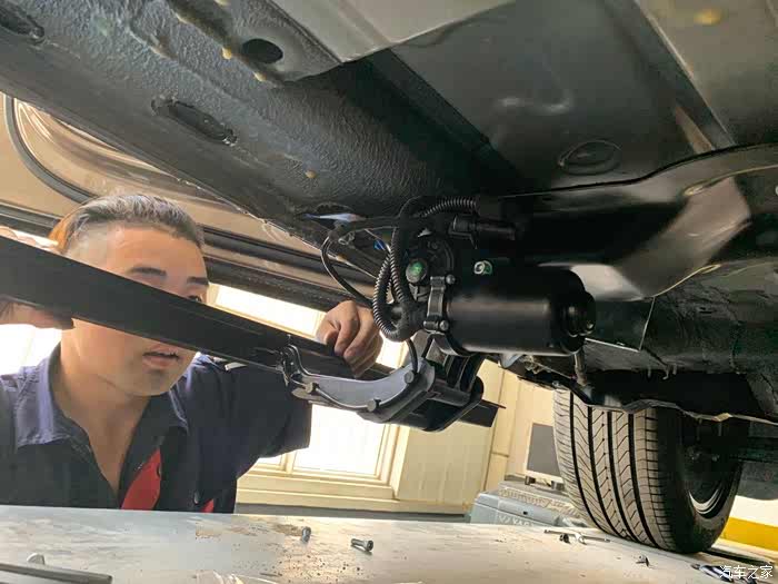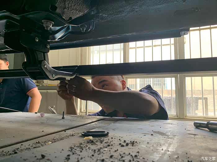 没一会儿,两名师傅竟然分工装完了两侧的伸缩电机。这手速也是没谁了。正在我称赞的时候,其中一名师傅说,因为这是原厂的,有对应的安装接口,几根螺丝很快就拧上了。