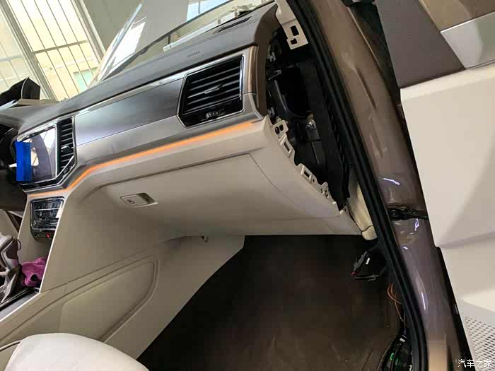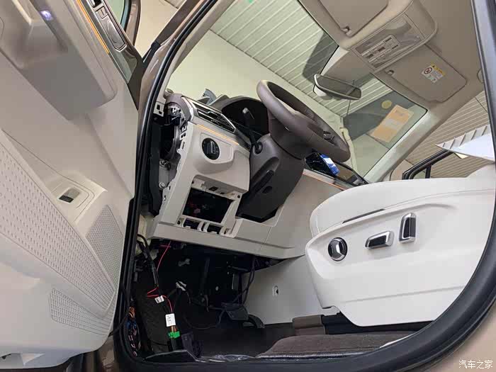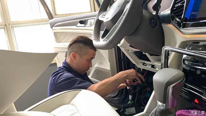 机械部分安装好以后,师傅们拆开内饰版,准备开始接线和安装控制器。