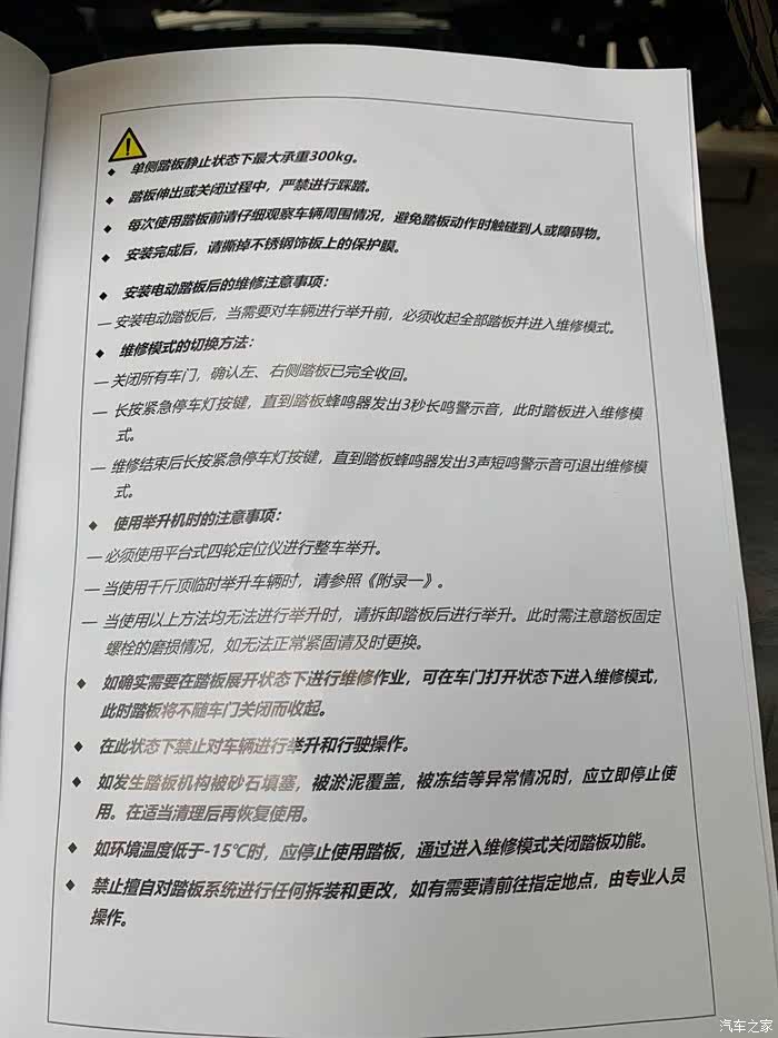 待我耐心看完说明书后发现,这个原厂的电动踏板几乎是无损安装,电动接线部分、电机、踏板基座等车内全都有专用的预留接口和螺母,全部完美匹配,着实让我十分欣慰。
