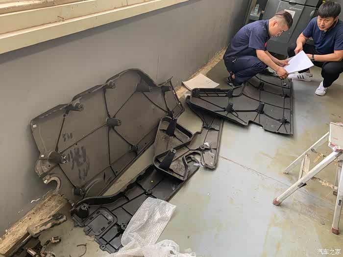 师傅们拆掉了下护板,准备开始安装伸缩电机了。