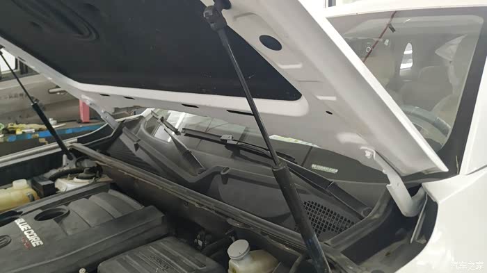 车子的保养至关重要,打开前面的盖子,液压杆支撑。