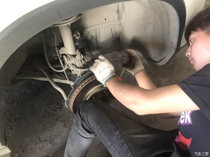我的这辆车,原厂刹车片,已经行驶了十一万公里,不得不说,长安汽车品质,真的很好,接下来,看看师傅如何操作的。。。最后建议大家不要自己动手更换,保命的东西,不是闹着玩的