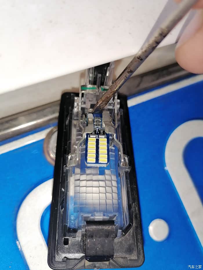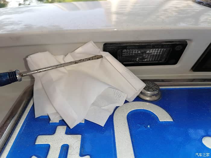 当时晚上还下着毛毛细雨,下车检查全车,发现后面牌照灯有一个不亮了。