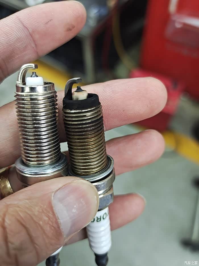 看看这是新旧对比的火花塞。