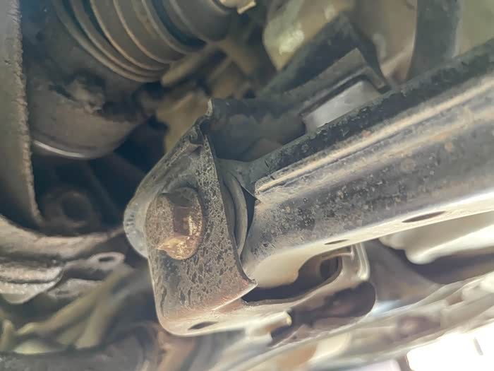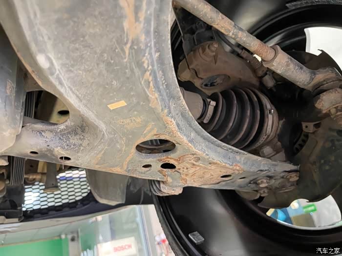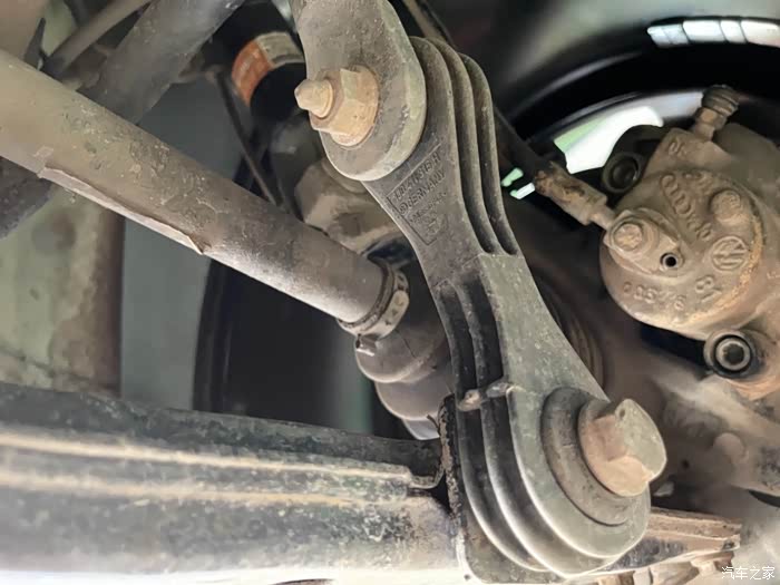 车子升起来检查,发现底盘件橡胶老化开裂严重,下支臂生锈,果断订货换新
