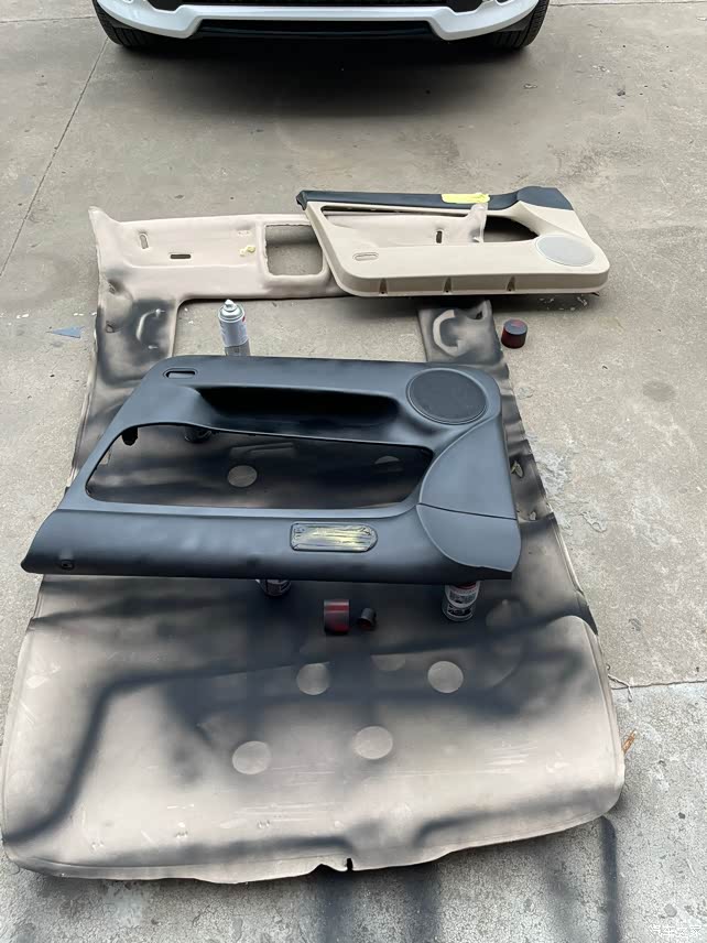 拆下来的内饰件自己打磨,喷漆改色……