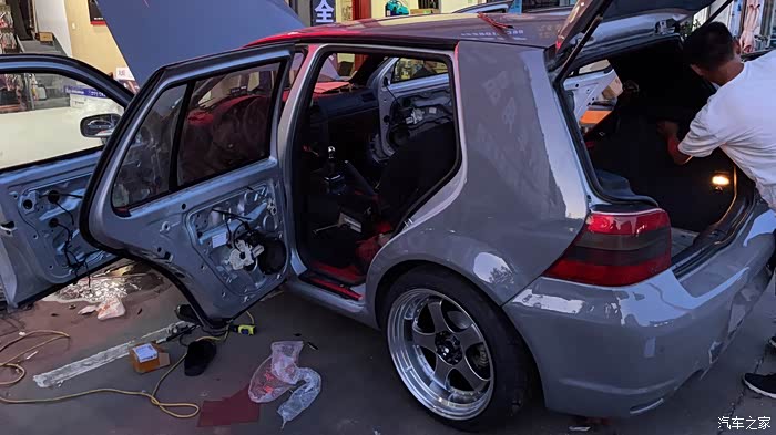 然后不耽误时间,没事拆空,把车子送去做漆换包围……