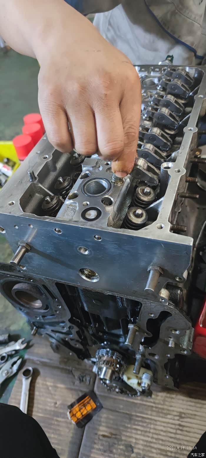朋友的修理厂要开始动手重组发动机了,给我找的个精装发动机三十年的老师傅